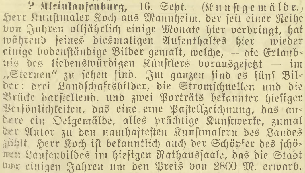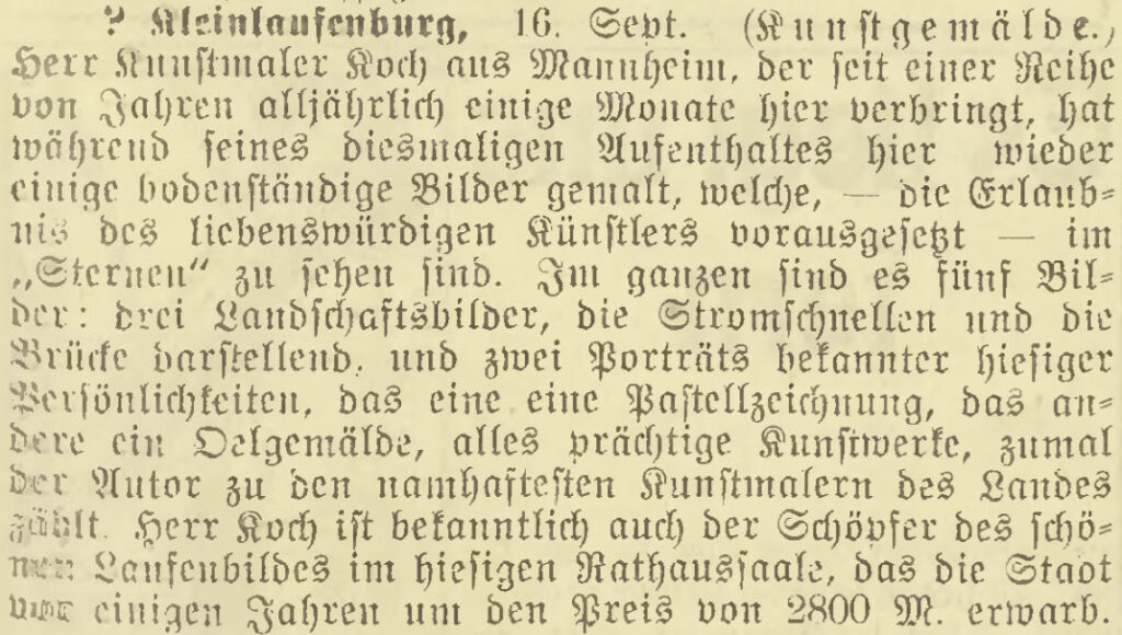 Der Alb-Bote vom 16. September 1910 berichtete auf Seite 5, dass einige Gemälde des Malers im Sommer 1910 in Laufenburg ausgestellt wurden.
