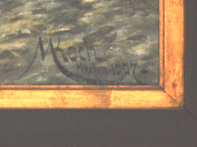Das Gemälde „Ansicht von Laufenburg“ ist in Öl auf Leinwand gemalt, ist rechts unten mit „MKoch Mheim 1907“ signiert und stammt aus dem Jahr 1907. Das Gemälde hat eine Größe von 90 x 160 cm und ist mit einem schwarzen Rahmen mit innenliegender Goldleiste gerahmt (insgesamte Größe 120 x 191 cm).