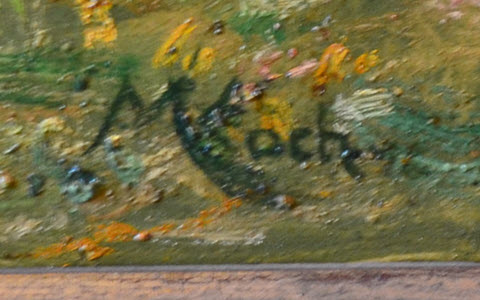 Das Gemälde „Inner-Arosa im Vorfrühling“ ist in Öl auf Karton gemalt, ist rechts unten mit „MKoch“ signiert und stammt aus dem Jahr 1926. Das Gemälde hat eine Größe von 62 x 76 cm und ist mit einem Holzrahmen versehen (insgesamte Größe: 87 x 101 cm).